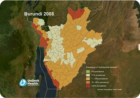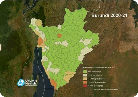 In Burundi, we supported the Ministry of Health to complete a national reassessment survey showing a dramatic decline in schistosomiasis after sustained treatment campaigns.
