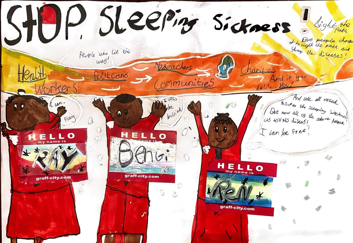 Eunita told us she made her poster after watching a video about a boy called Benji who had sleeping sickness and lived in Congo. It felt unfair that he and other children could not do things they should be able to do.